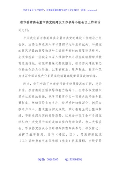 / 在市委常委会暨市委党的建设工作领导小组会议上的讲话