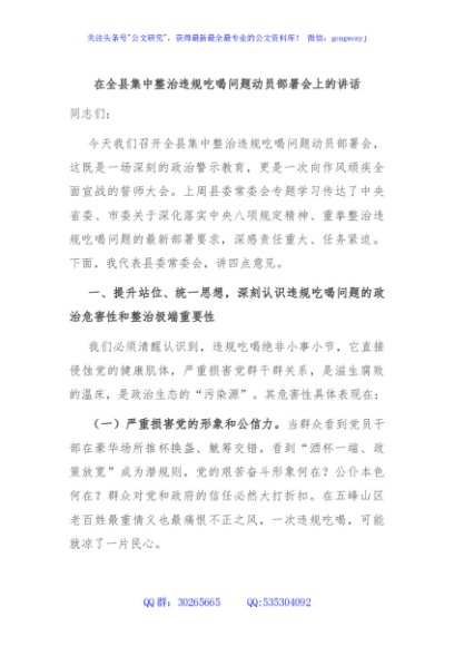 / 在全县集中整治违规吃喝问题动员部署会上的讲话