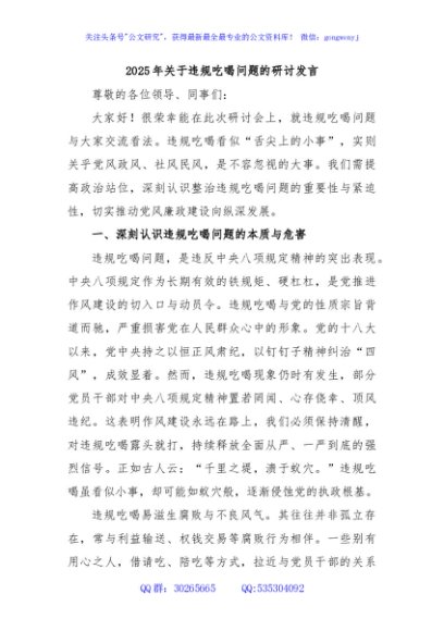 / 2025年关于违规吃喝问题的研讨发言