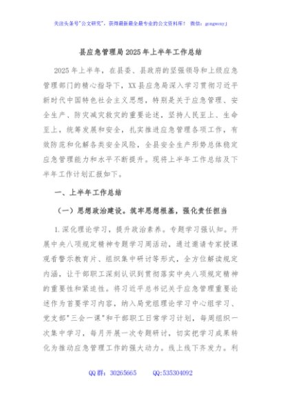 / 县应急管理局2025年上半年工作总结