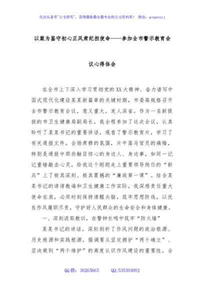 以案为鉴守初心正风肃纪担使命——参加全市警示教育会议心得体会