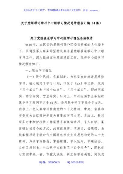 / (4篇)关于党组理论学习中心组学习情况总结报告汇编