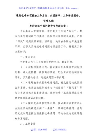 / 违规吃喝专项整治工作方案、负面清单、工作情况报告、讲稿汇编