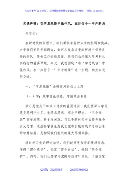 / 党课讲稿:在学思践悟中强作风,在知行合一中开新局