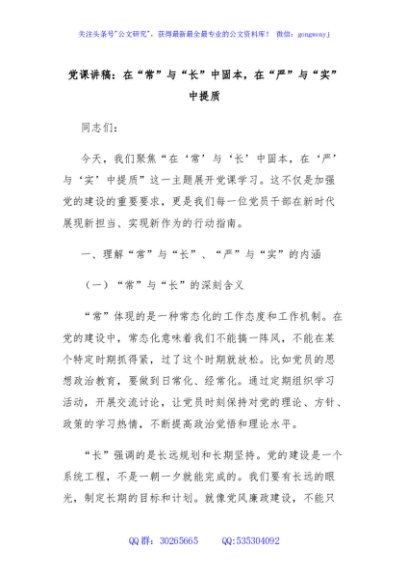 / 党课讲稿:在“常”与“长”中固本,在“严”与“实”中提质