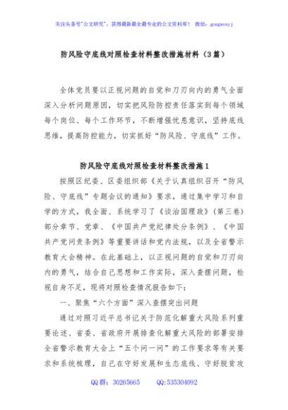 / (3篇)防风险守底线对照检查材料整改措施材料