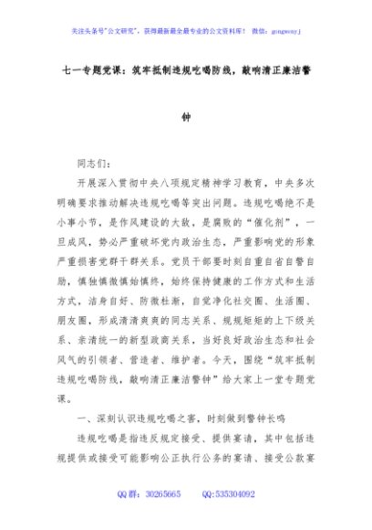七一专题党课:筑牢抵制违规吃喝防线,敲响清正廉洁警钟