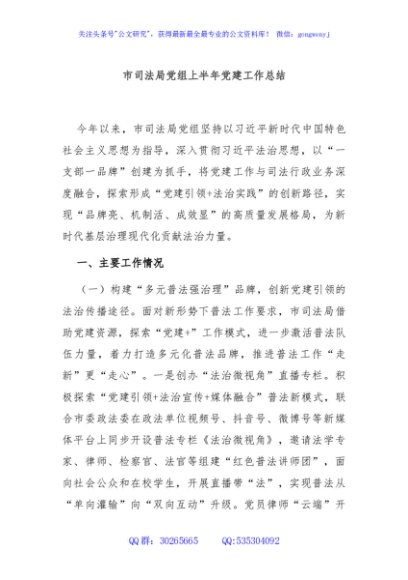 / 市司法局党组上半年党建工作总结