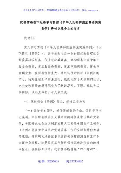 / 纪委常委在市纪委学习贯彻《中华人民共和国监察法实施条例》研讨交流会上的发言