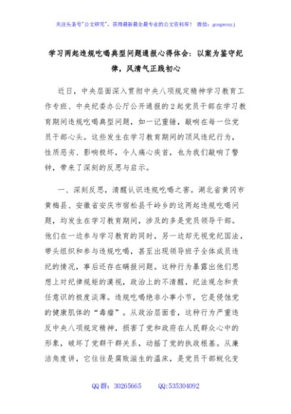 学习两起违规吃喝典型问题通报心得体会 以案为鉴守纪律,风清气正践初心
