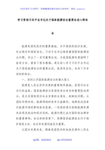 / 学习贯彻习近平总书记关于国家能源安全重要论述心得体会
