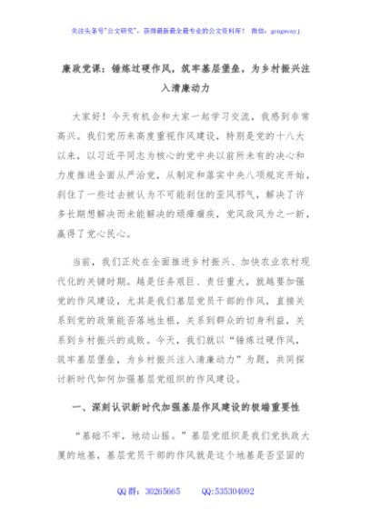 / 廉政党课:锤炼过硬作风,筑牢基层堡垒,为乡村振兴注入清廉动力