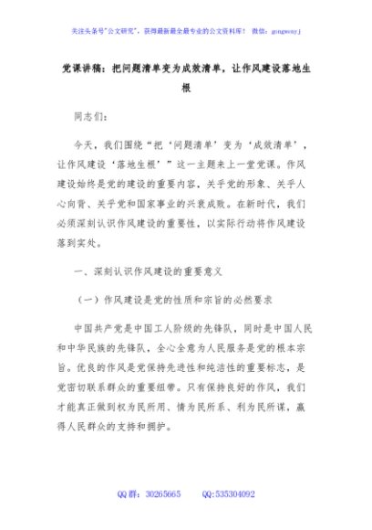 / 党课讲稿:把问题清单变为成效清单,让作风建设落地生根