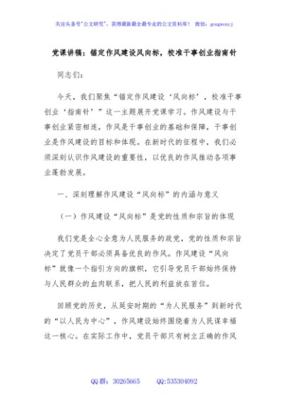 / 党课讲稿:锚定作风建设风向标,校准干事创业指南针