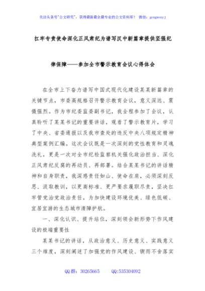 / 扛牢专责使命深化正风肃纪为谱写汉中新篇章提供坚强纪律保障——参加全市警示教育会议心得体会