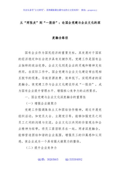 从“两张皮”到“一股劲”:论国企党建与企业文化的深度融合路径