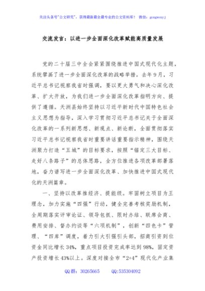 / 交流发言:以进一步全面深化改革赋能高质量发展