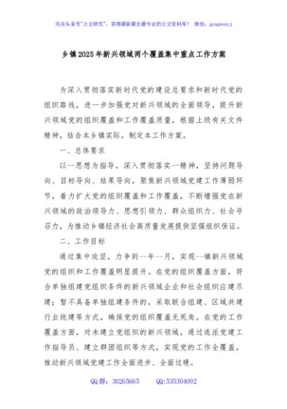 / 乡镇2025年新兴领域两个覆盖集中重点工作方案
