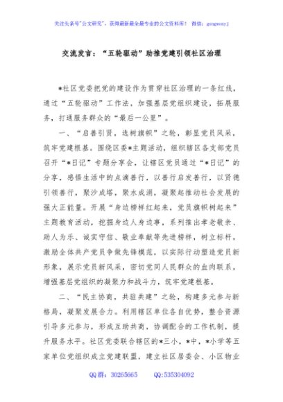 / 交流发言:“五轮驱动”助推党建引领社区治理