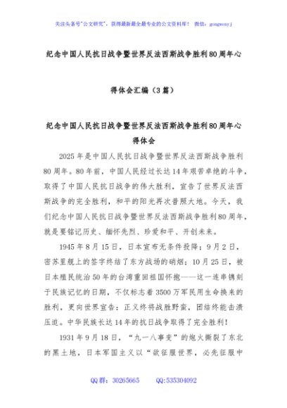 / (3篇)纪念中国人民抗日战争暨世界反法西斯战争胜利80周年心得体会汇编
