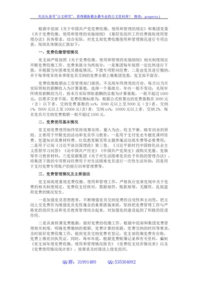 / 国企党支部党费收缴使用和管理情况自查专项报告
