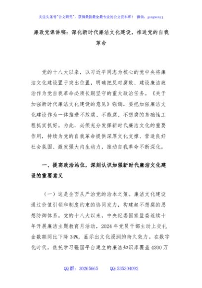 / 廉政党课讲稿:深化新时代廉洁文化建设,推进党的自我革命