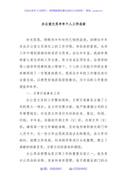 / 办公室文员半年个人工作总结