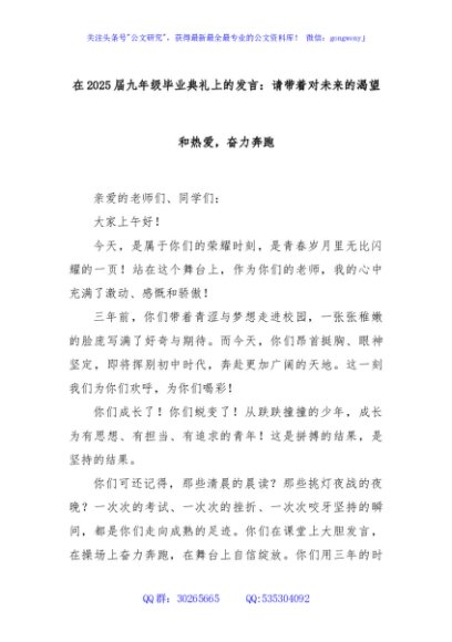 / 在2025届九年级毕业典礼上的发言:请带着对未来的渴望和热爱,奋力奔跑