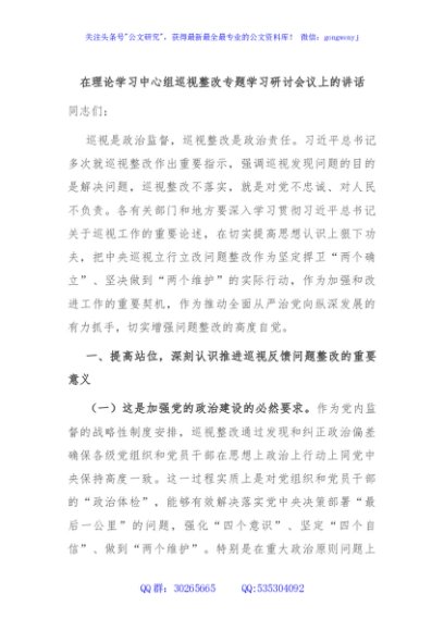 / 在理论学习中心组巡视整改专题学习研讨会议上的讲话