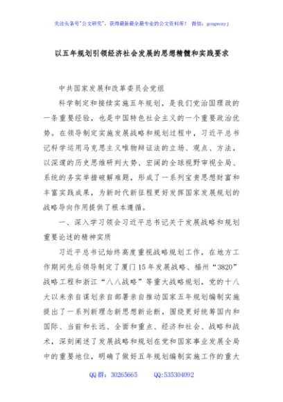 / 以五年规划引领经济社会发展的思想精髓和实践要求