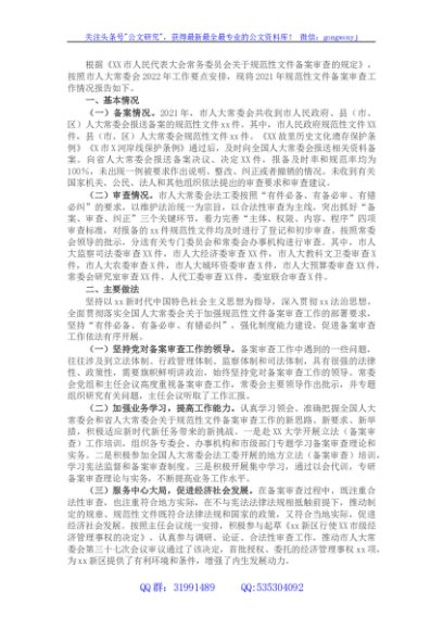 / 关于2021年规范性文件备案审查工作情况的报告