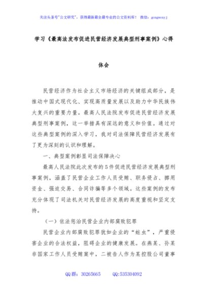 / 学习《最高法发布促进民营经济发展典型刑事案例》心得体会