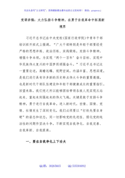 / 党课讲稿:大力弘扬斗争精神,在勇于自我革命中拓展新境界