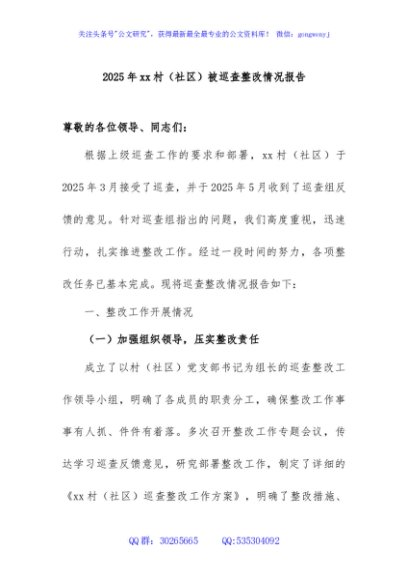 / XXx村(社区)巡查整改情况通告