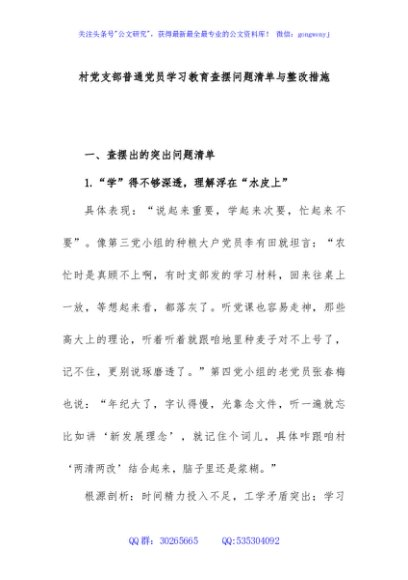 / 2.村级党支部普通党员学习教育查摆问题清单与整改措施