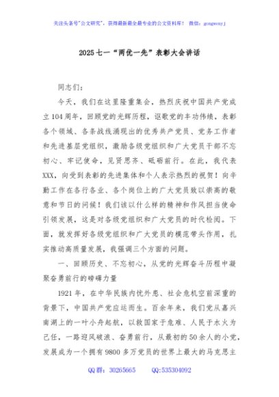 2025在局七一“两优一先”表彰会暨2025年上半年全面从严治党会议上的讲话