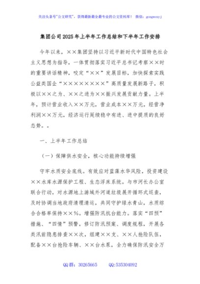 / 集团公司2025年上半年工作总结和下半年工作安排