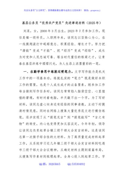 / 基层公务员“优秀共产党员”先进事迹材料(2025年)