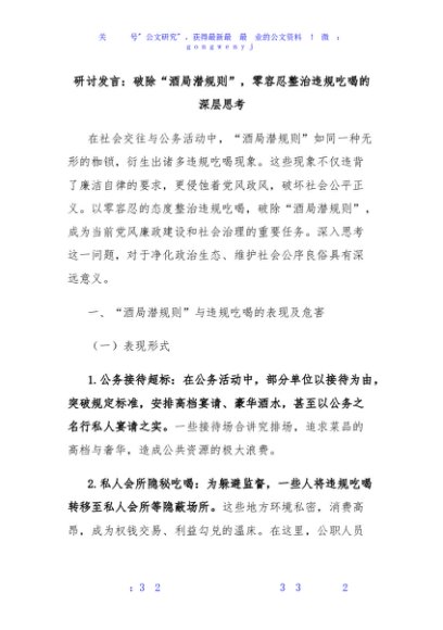 / 研讨发言:破除“酒局潜规则”,零容忍整治违规吃喝的深层思考
