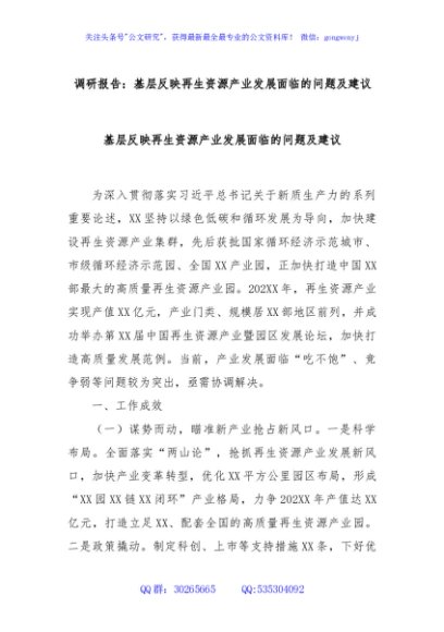 调研报告:基层反映再生资源产业发展面临的问题及建议基层反映再生资源产业发展面临的问题及建议