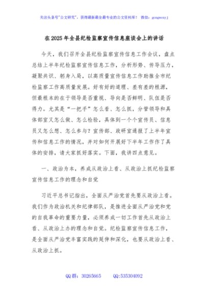 / 在2025年全县纪检监察宣传信息座谈会上的讲话