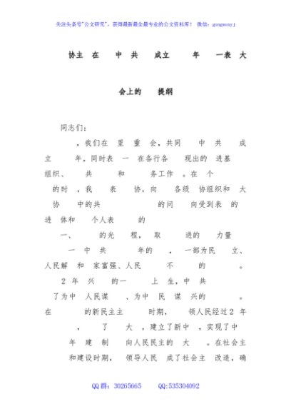 / 某市政协主席在庆祝中国共产党成立104周年暨七一表彰大会上的讲话提纲