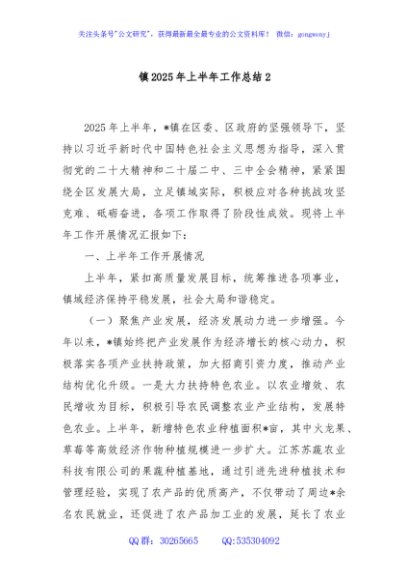 / 镇2025年上半年工作总结2