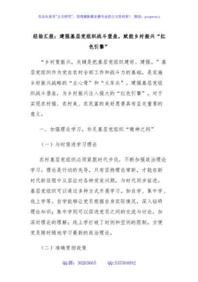 经验汇报:建强基层党组织战斗堡垒,赋能乡村振兴“红色引擎”