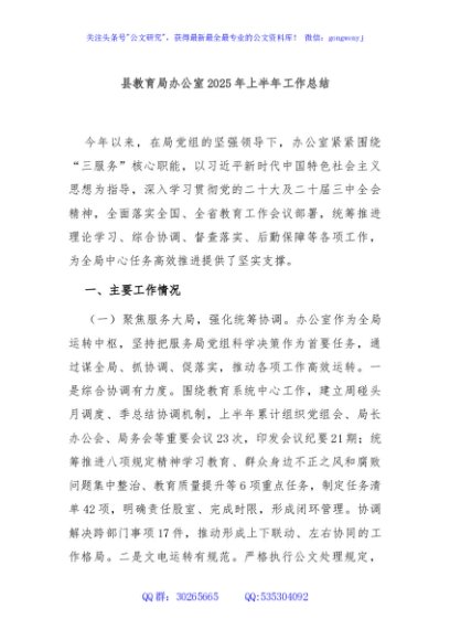 / 县教育局办公室2025年上半年工作总结