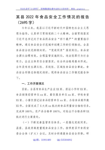 / 某县2022年食品安全工作情况的报告