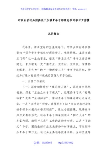 / 市农业农村局团委关于加强青年干部理论学习学习工作情况的报告