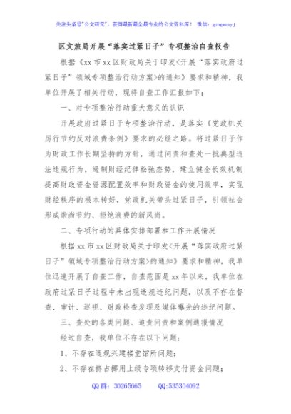 / 区文旅局开展“落实过紧日子”专项整治自查报告