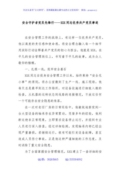 / 安全守护者党员先锋行——XXX同志优秀共产党员事迹