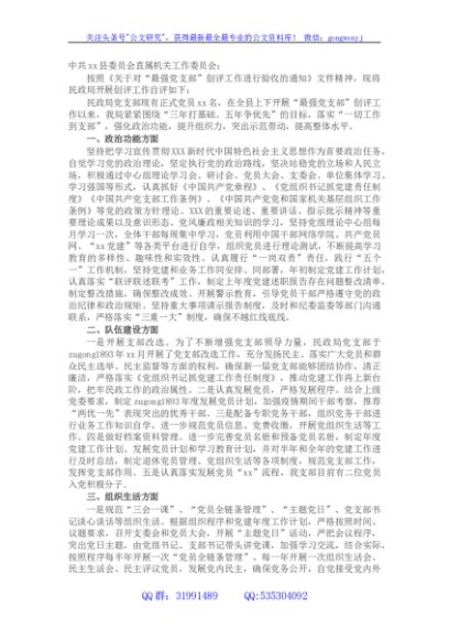 / 县民政局党支部创建“最强党支部”工作自评报告